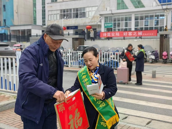 岁序更替,华章日新。春节将至,年味渐浓,返乡团圆成为千家万户的共同期盼。为深入践行金融工作的政治性、人民性,落实湖北省保险行业协会《关于开展2026年“新春送暖、保险有爱”主题回访活动的通知》要求,2026年2月9日,中国人寿安陆市支公司在经理室统筹部署与大力支持下,走进安陆火车站,开展“新春送暖、保险有爱”主题公益服务活动,以暖心服务迎接返乡乡亲,用专业保障守护群众平安,把央企的责任与温度送到群众心坎上。